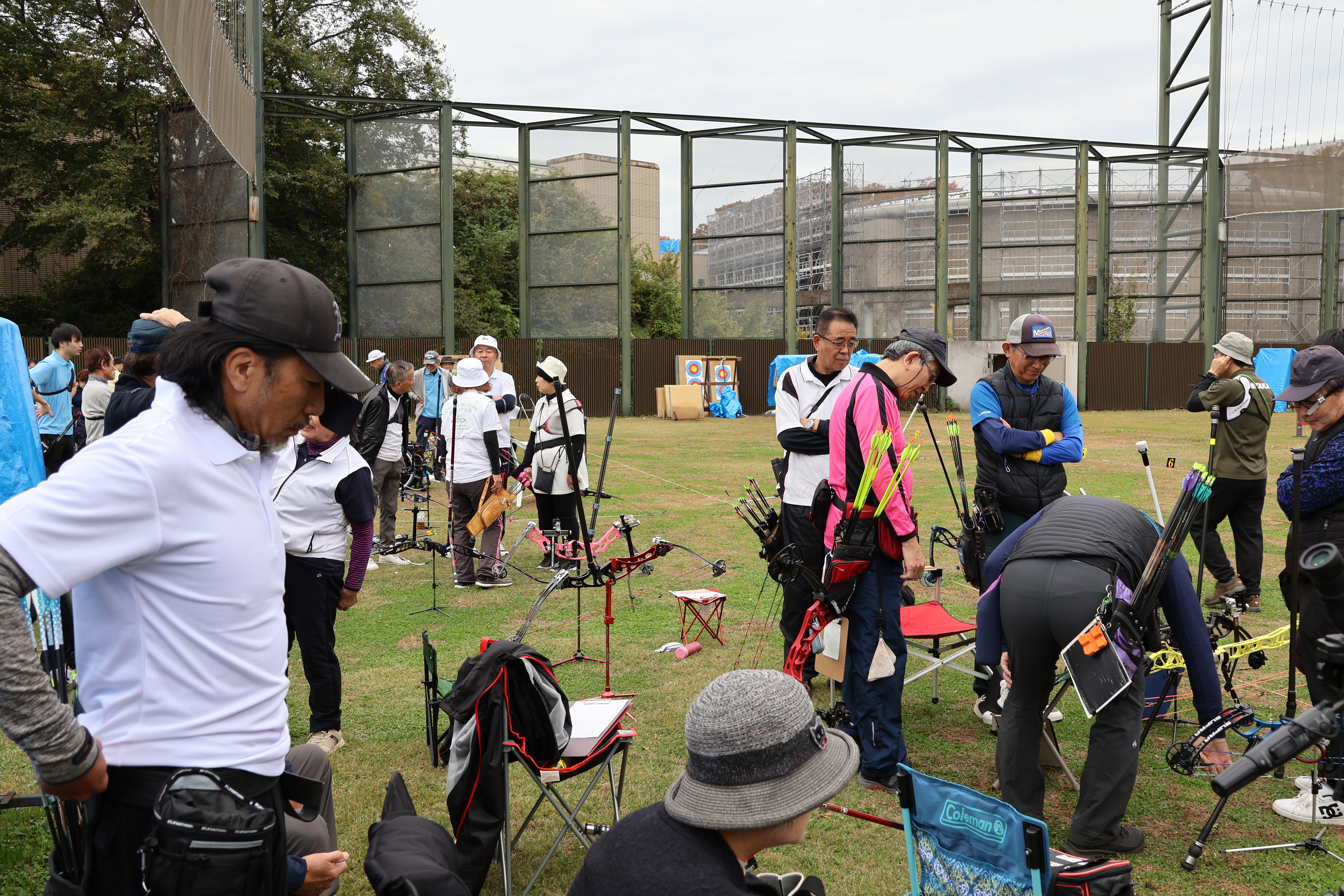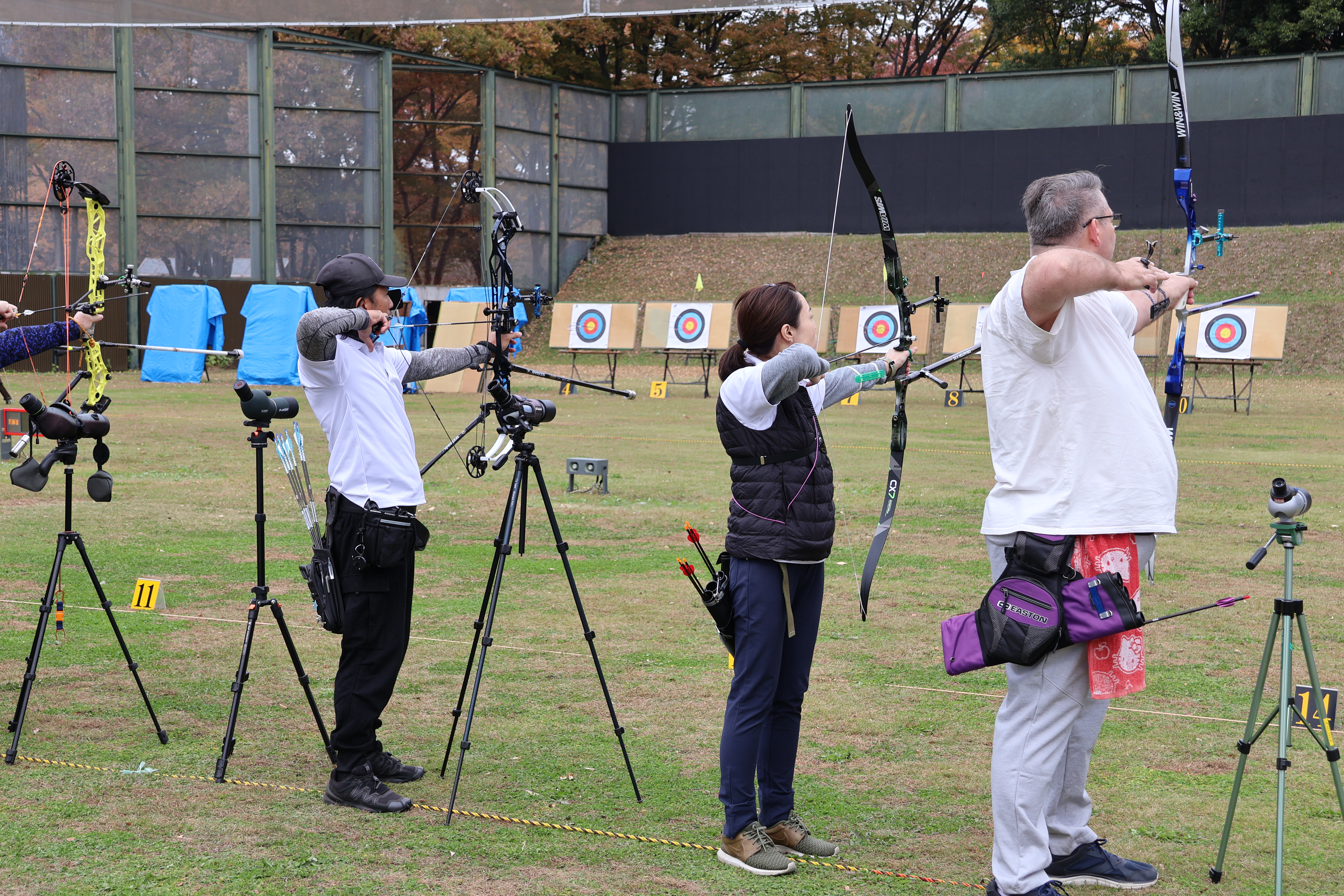 種目:18m(RCは40㎝的、CPは縦三つ目的、初心者は80cm的)RCは前半30射でクラス分け(チャンピオンフライト、Aフライト)後半30射で順位決定